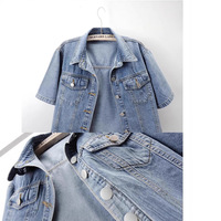 2025 Primavera Verano estilo europeo americano mujer versátil chaqueta de mezclilla Casual adelgazamiento prendas de vestir exteriores conejo de manga corta frontal