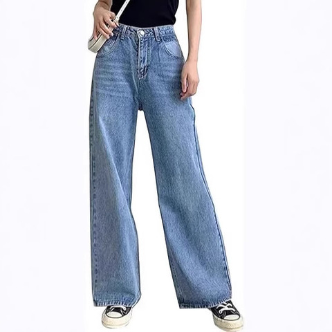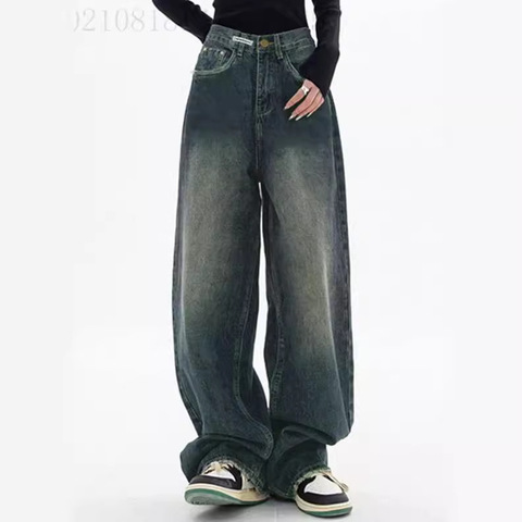 Pantalones de pierna ancha de cintura alta holgados de diseño Retro americano europeo de gran tamaño para mujer tela vaquera moda transpirable Casual
