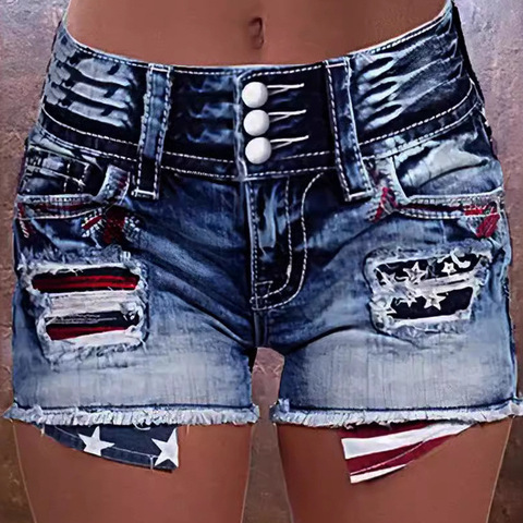 Pantalones cortos de mezclilla para mujer ajustados cómodos de cintura alta con múltiples botones bordados de comercio transfronterizo Europeo Americano